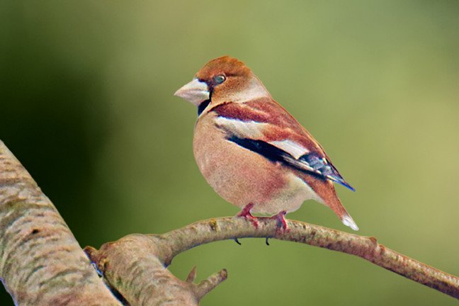 hawfinch coming to feeders along with chaffinch flock and female blackcap